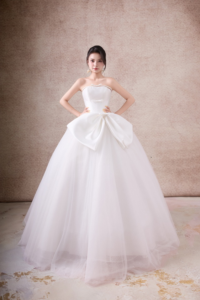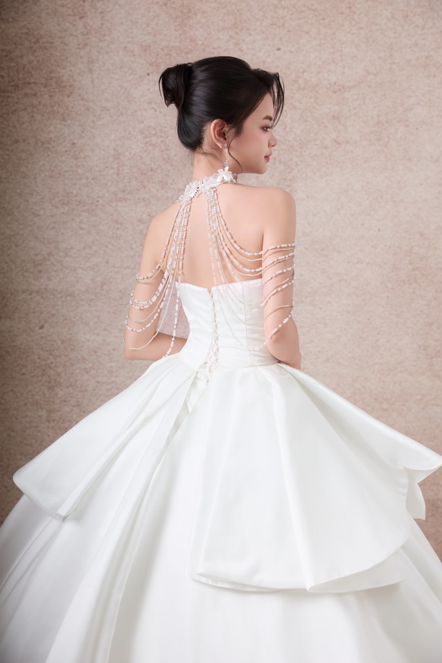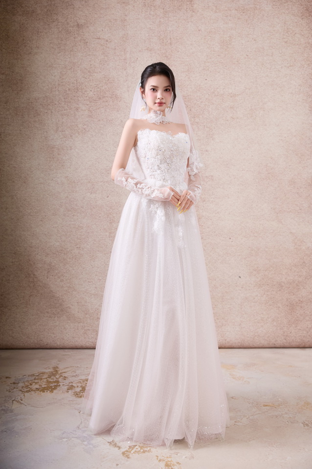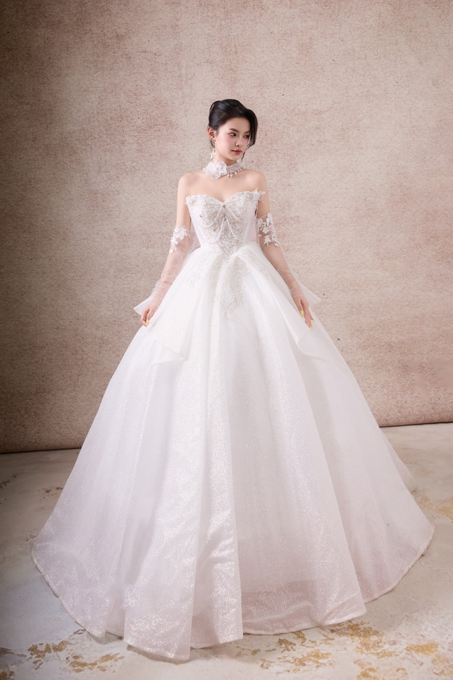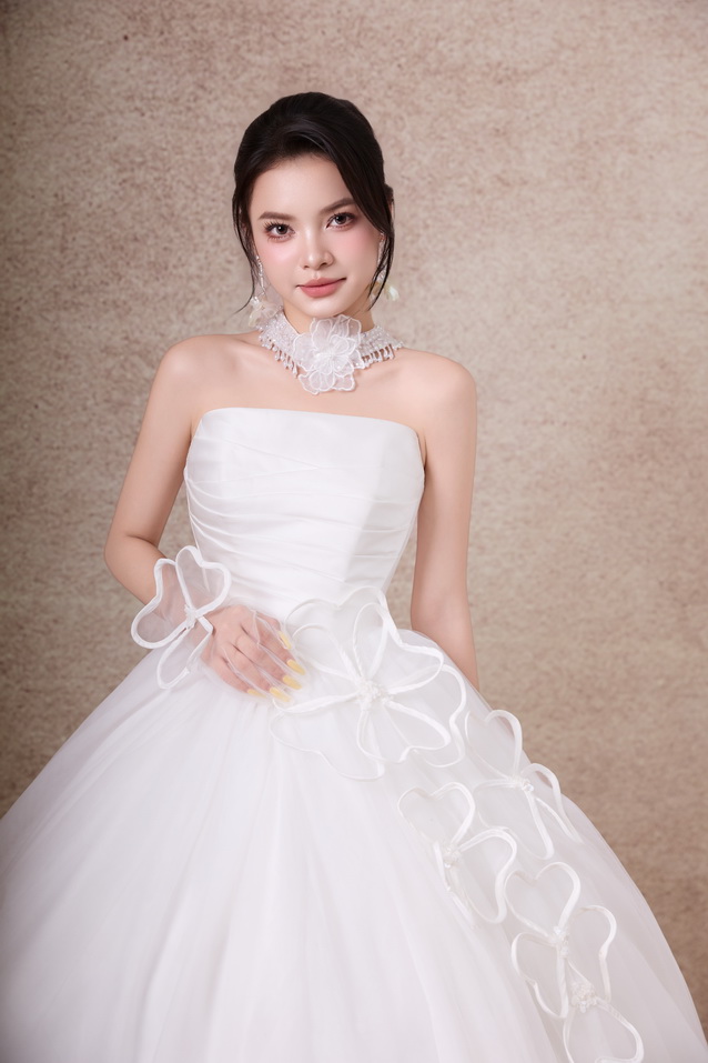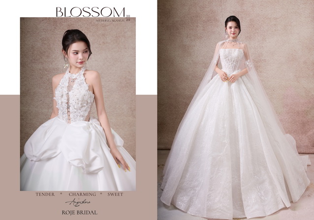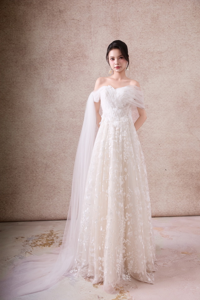 Váy cưới dáng xoè luôn được xem là “nàng thơ bất diệt” trong thế giới váy cưới. Với phần thân trên ôm gọn tôn đường nét quyến rũ và chân váy bồng xoè nhẹ nhàng, bộ sưu tập lần này mang đến cho nàng dâu sự kết hợp hoàn hảo giữa sang trọng – lãng mạn – bay bổng.