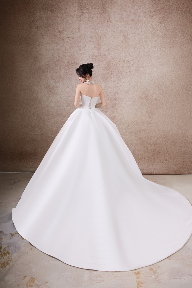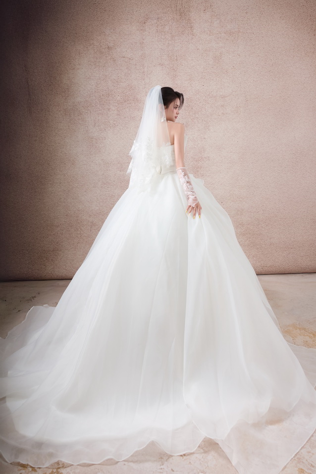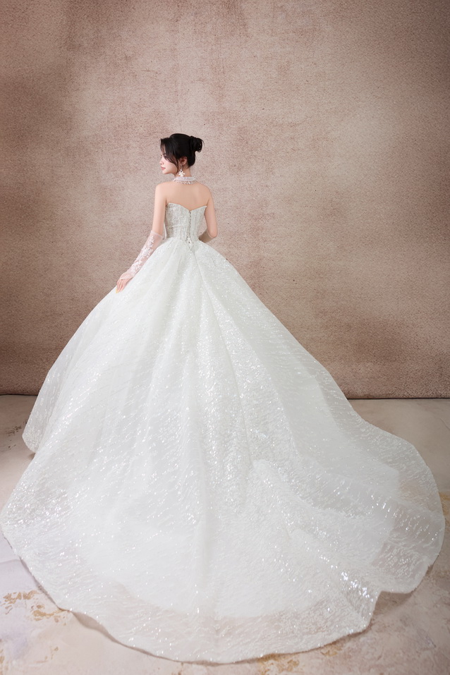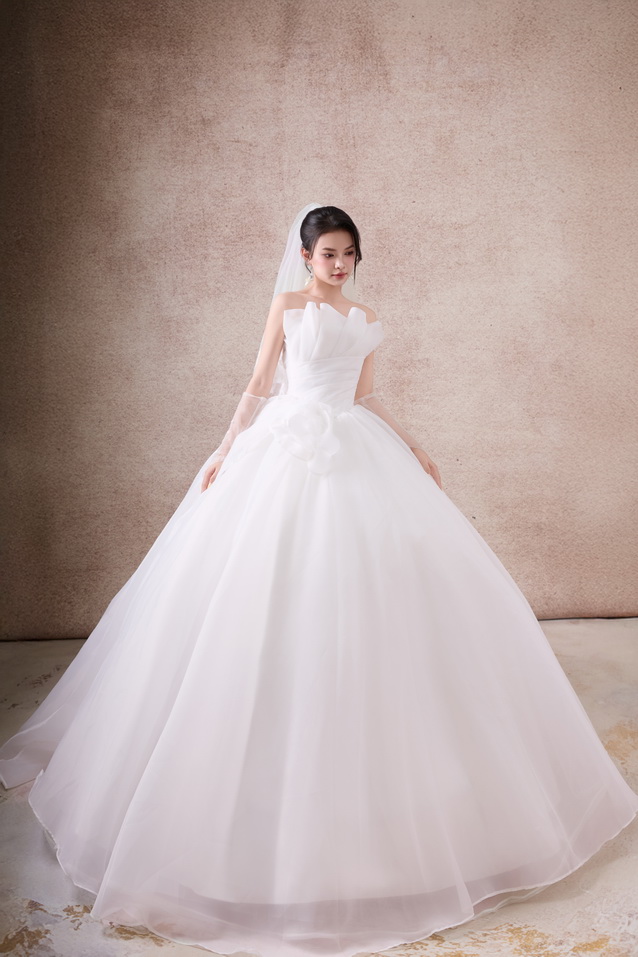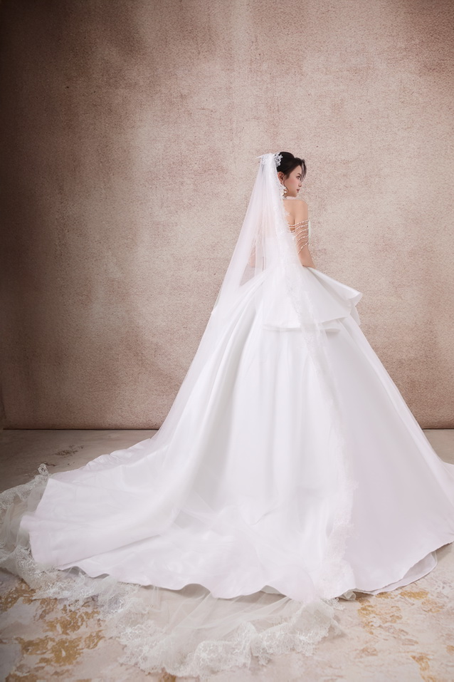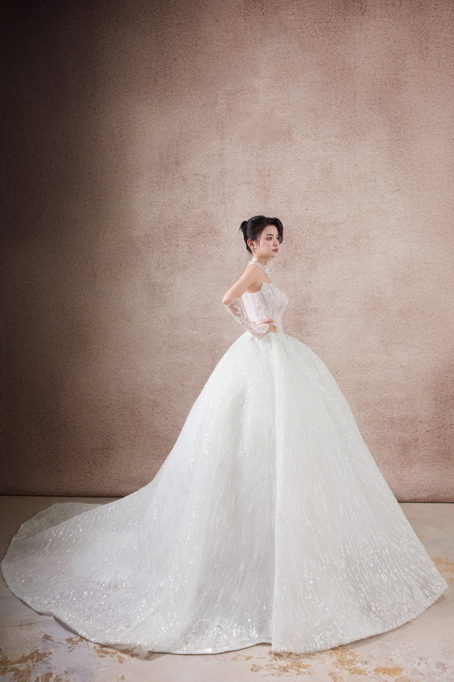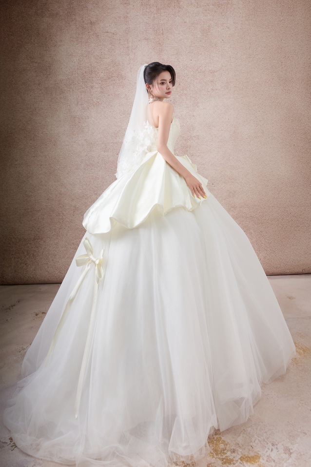 Váy cưới dáng xoè luôn được xem là “nàng thơ bất diệt” trong thế giới váy cưới. Với phần thân trên ôm gọn tôn đường nét quyến rũ và chân váy bồng xoè nhẹ nhàng, bộ sưu tập lần này mang đến cho nàng dâu sự kết hợp hoàn hảo giữa sang trọng – lãng mạn – bay bổng.