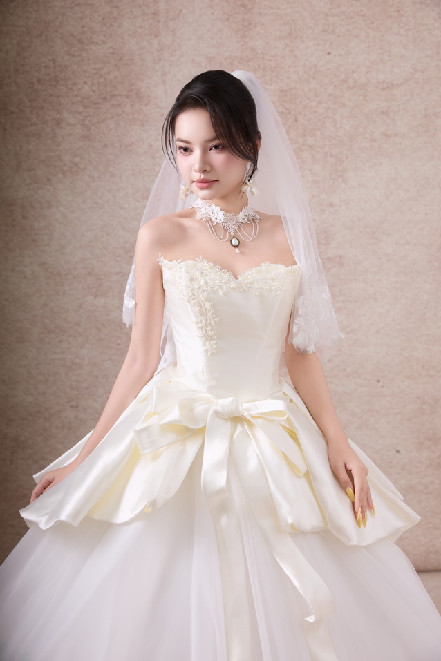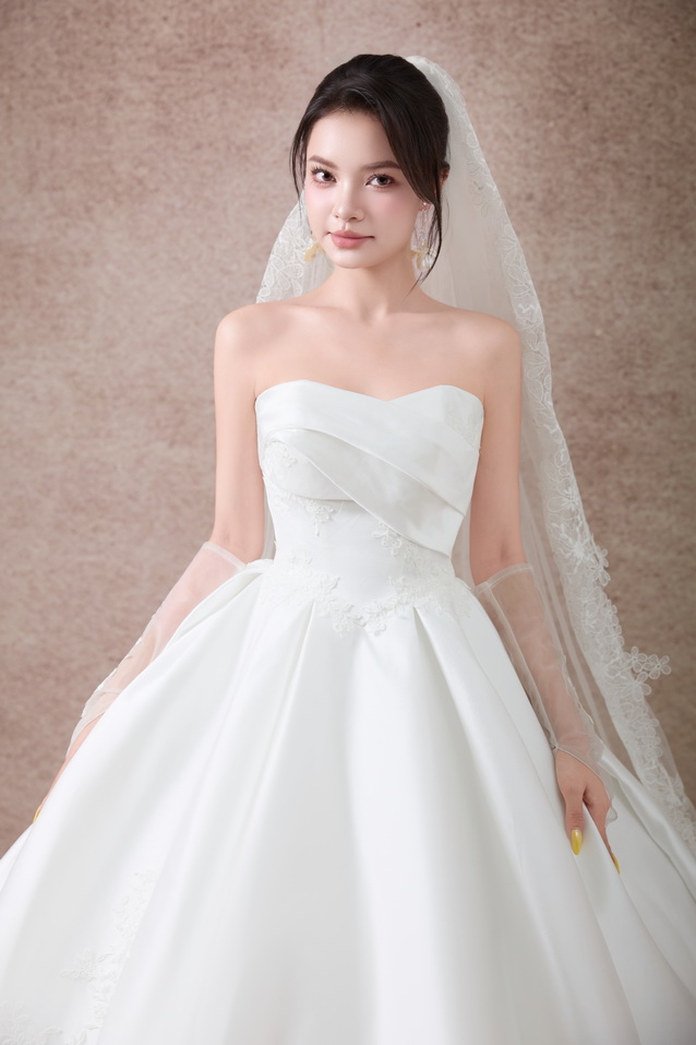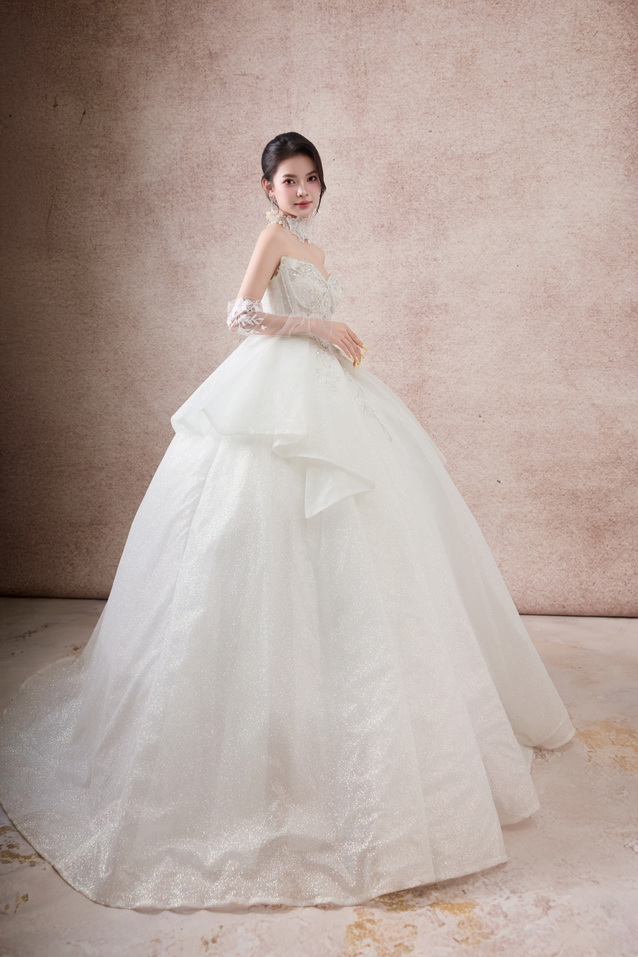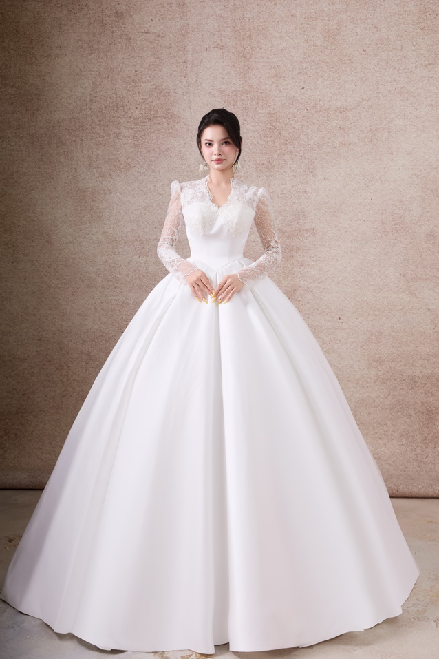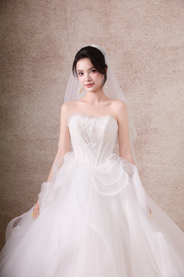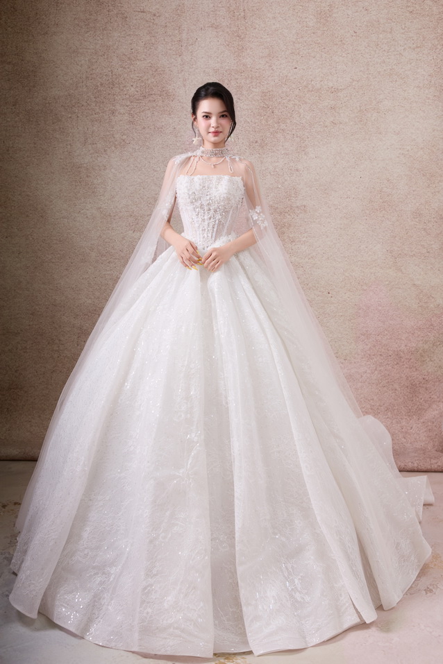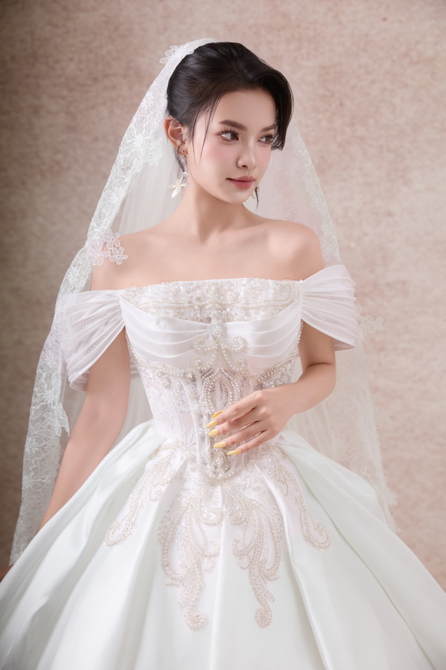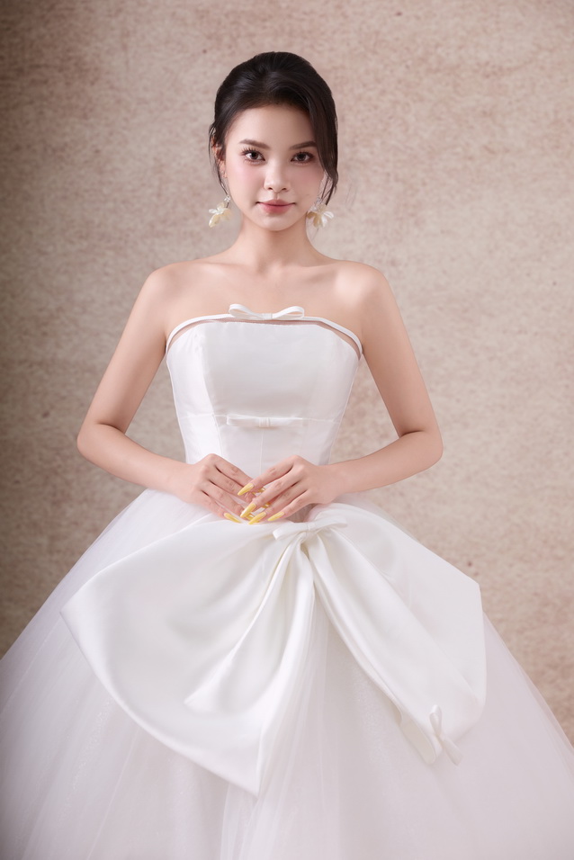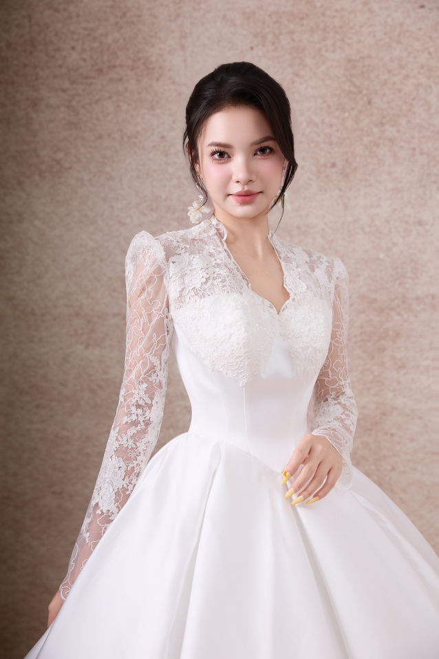 Váy cưới dáng xoè luôn được xem là “nàng thơ bất diệt” trong thế giới váy cưới. Với phần thân trên ôm gọn tôn đường nét quyến rũ và chân váy bồng xoè nhẹ nhàng, bộ sưu tập lần này mang đến cho nàng dâu sự kết hợp hoàn hảo giữa sang trọng – lãng mạn – bay bổng.
