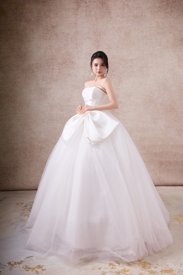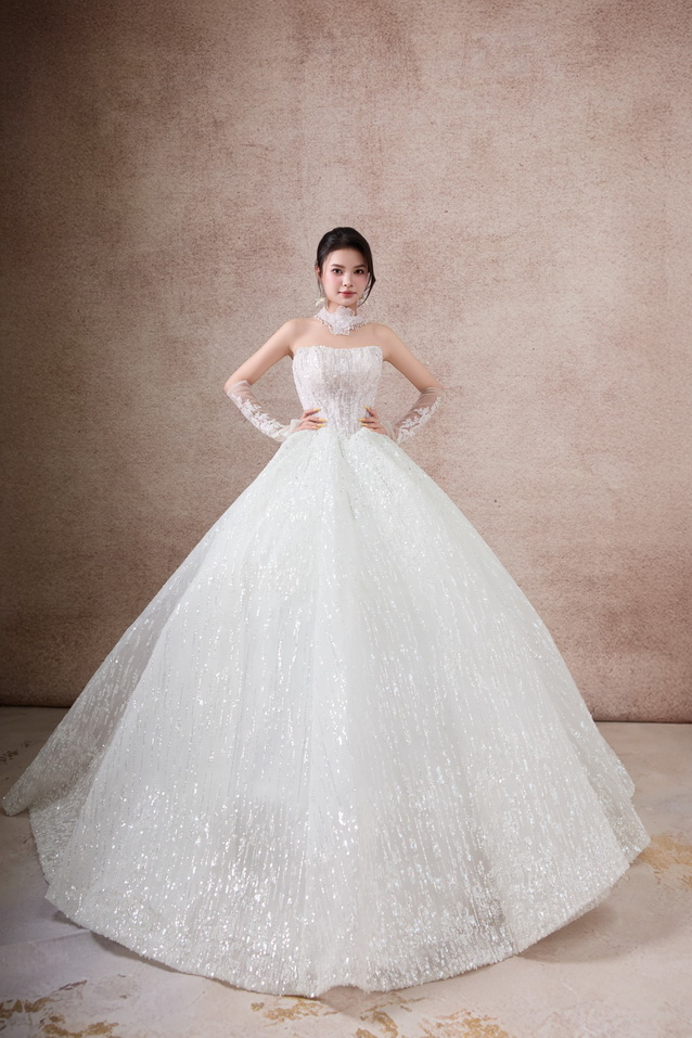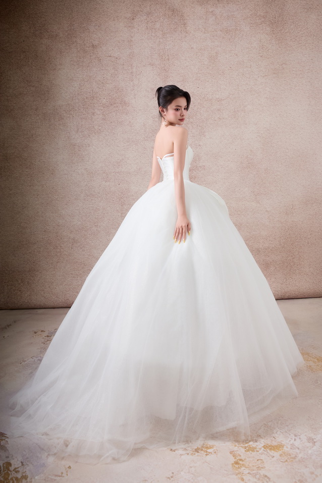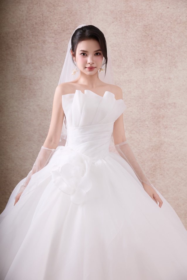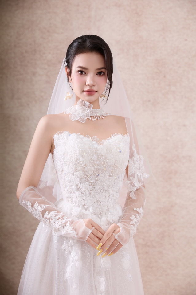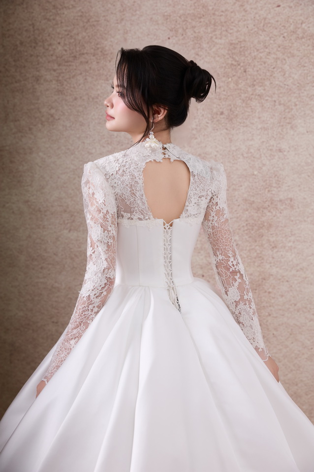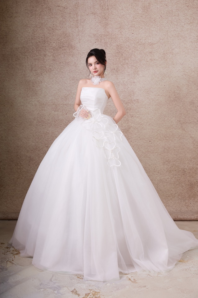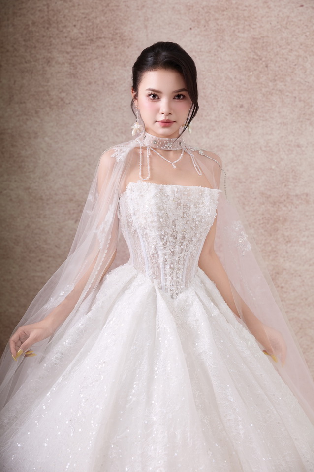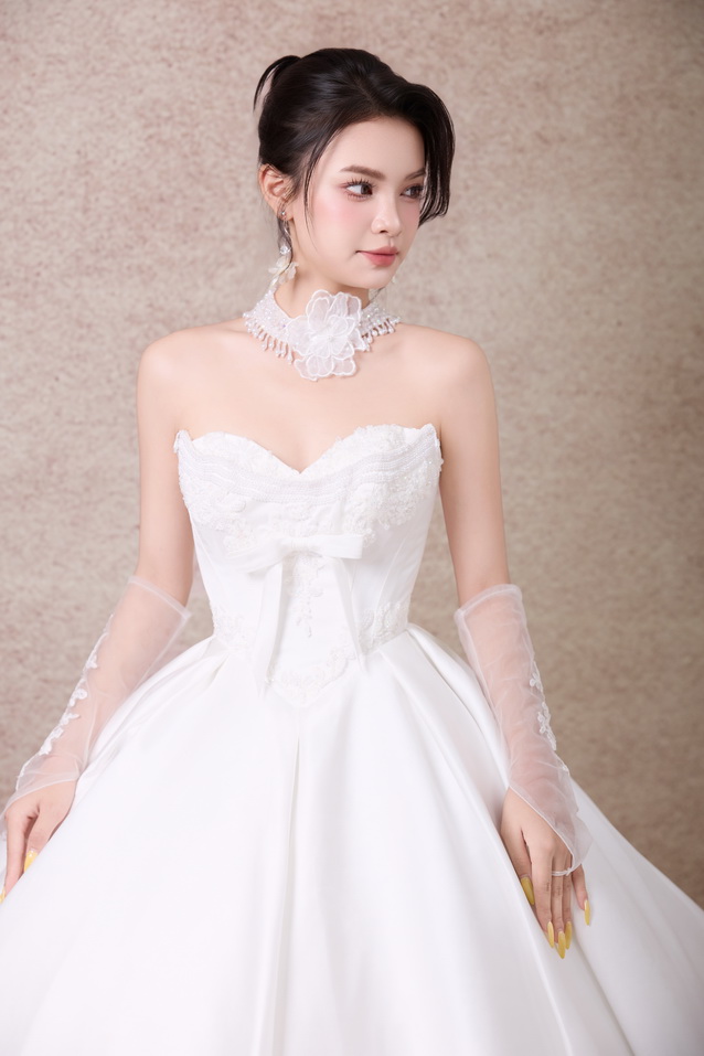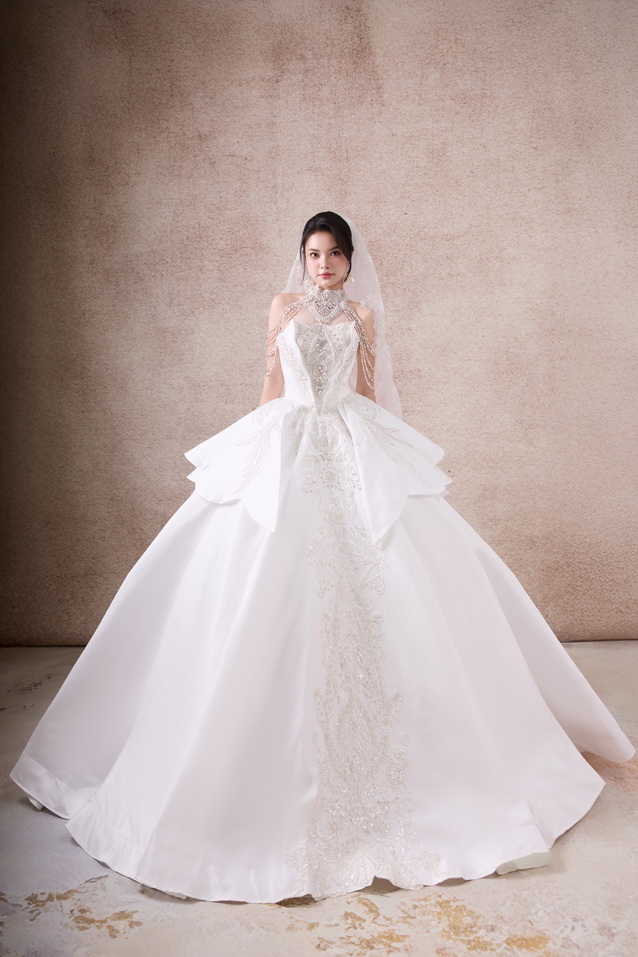 Váy cưới dáng xoè luôn được xem là “nàng thơ bất diệt” trong thế giới váy cưới. Với phần thân trên ôm gọn tôn đường nét quyến rũ và chân váy bồng xoè nhẹ nhàng, bộ sưu tập lần này mang đến cho nàng dâu sự kết hợp hoàn hảo giữa sang trọng – lãng mạn – bay bổng.