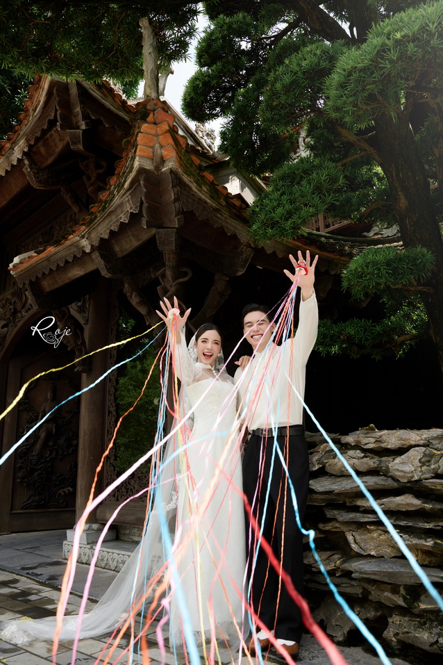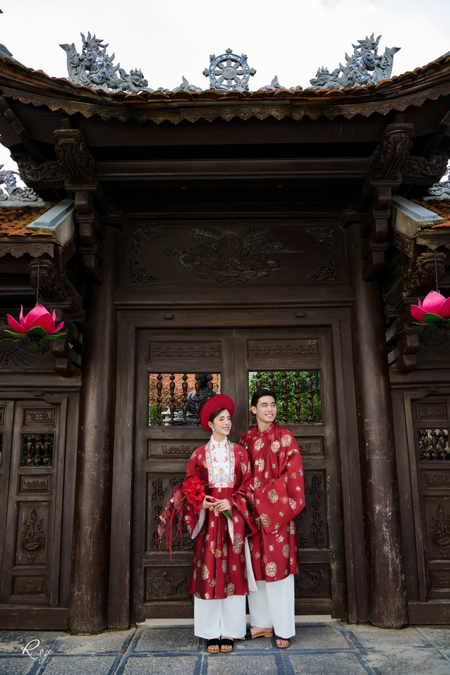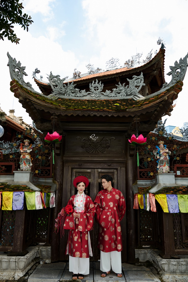 Chút gió heo may của mùa chuyển, chút sắc đỏ rực rỡ trên nền chùa cổ, và nụ cười đôi trẻ – trọn vẹn như lời hẹn ước ngàn năm.