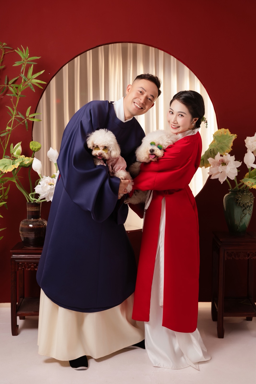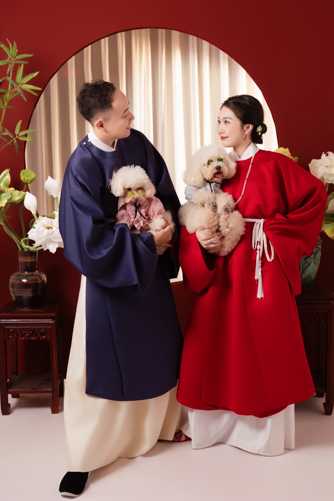 Từ khoảnh khắc hai anh chị diện bộ phục trang truyền thống, ôm theo hai bé cún xinh xắn… Roje hiểu rằng: