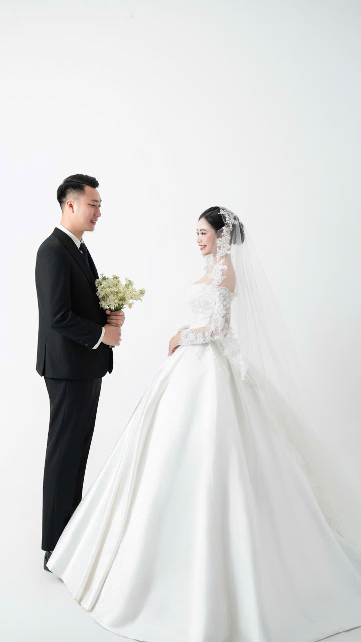 Ánh sáng được tiết chế vừa đủ, từng cái nắm tay, từng khoảnh khắc ôm nhau đều trở nên tinh khôi và rất thật. Một lựa chọn an toàn cho những cặp đôi yêu sự tối giản, nhưng vẫn muốn bộ ảnh cưới của mình thật sang và không bao giờ lỗi mốt.