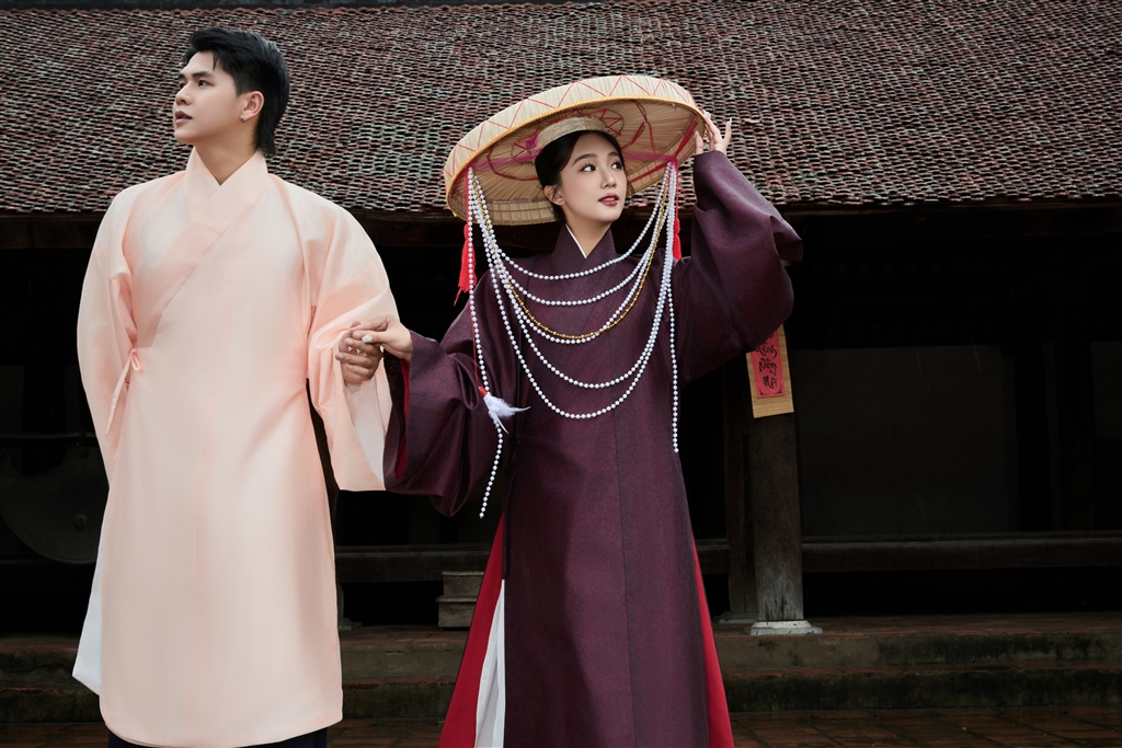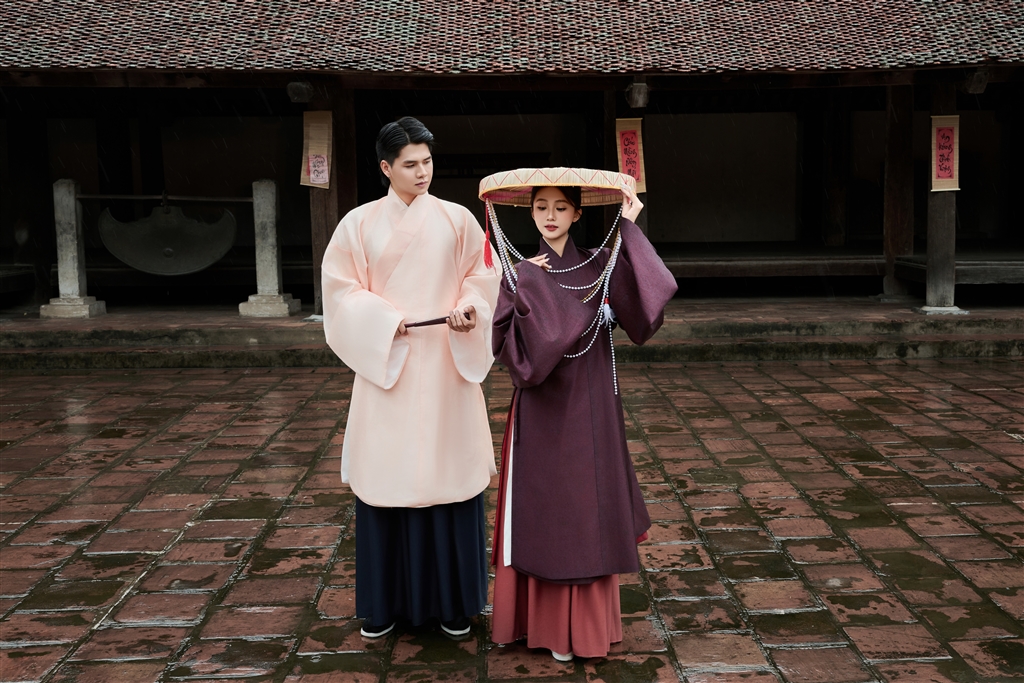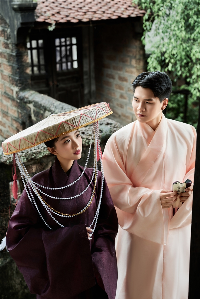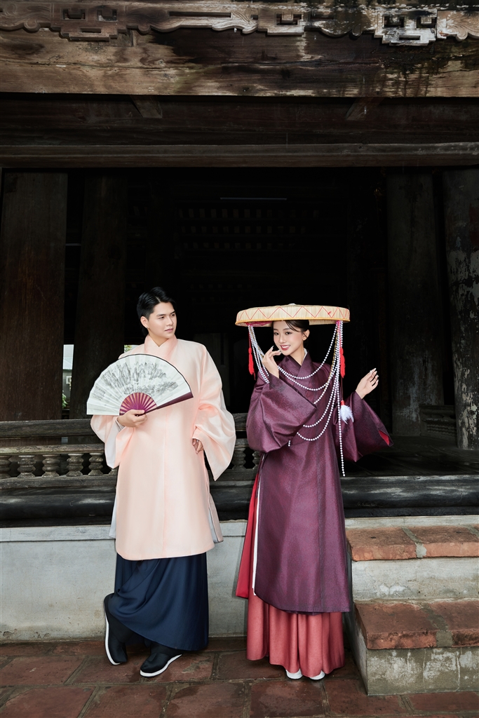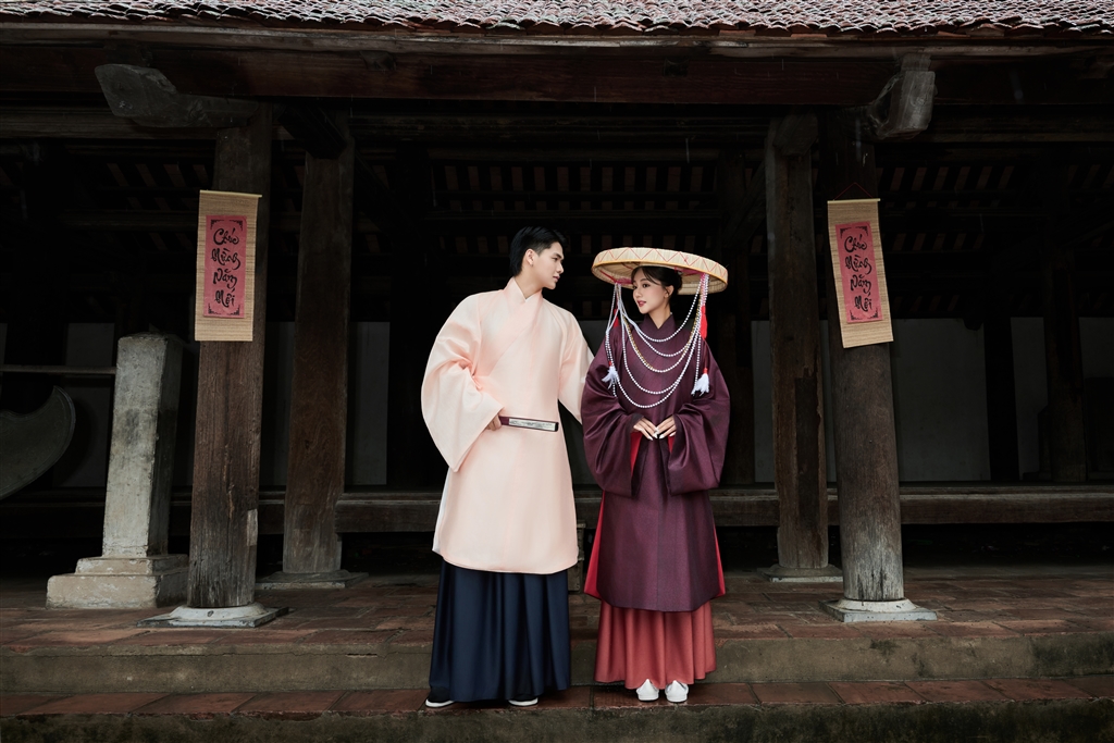 Trong không gian làng cổ Đường Lâm, Dâu Rể nhà Roje đang hóa thân thành những nhân vật bước ra từ sử sách – chỉn chu, tinh tế và rất khác biệt.