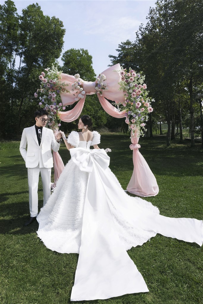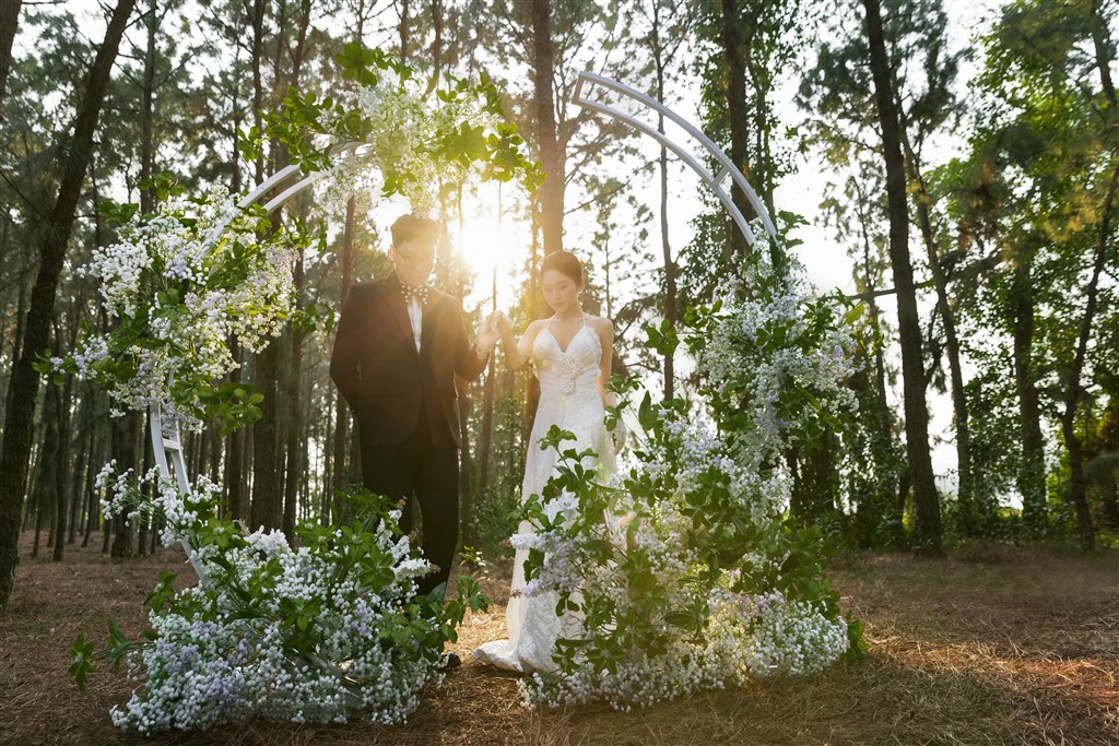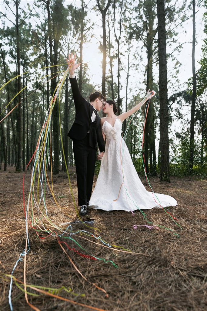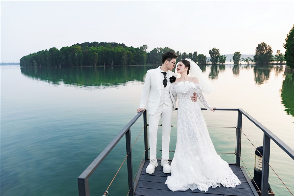 Bối cảnh hồ nước rộng lớn, xanh trong, bao quanh là núi và rừng, cực kỳ thích hợp cho concept ảnh cưới mang màu sắc thanh bình – lãng mạn – nên thơ.