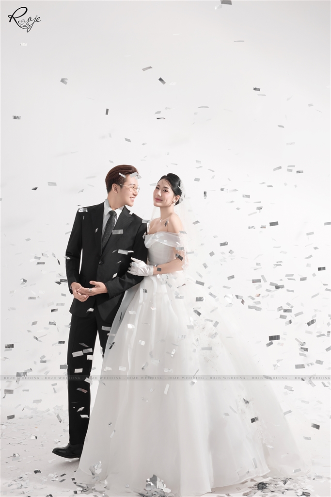 Không cần bối cảnh cầu kỳ hay phụ kiện rườm rà, concept chụp cưới phông trắng trơn tại phòng vô cực là lựa chọn hoàn hảo cho những cặp đôi yêu sự tinh giản, hiện đại và đậm chất nghệ thuật.